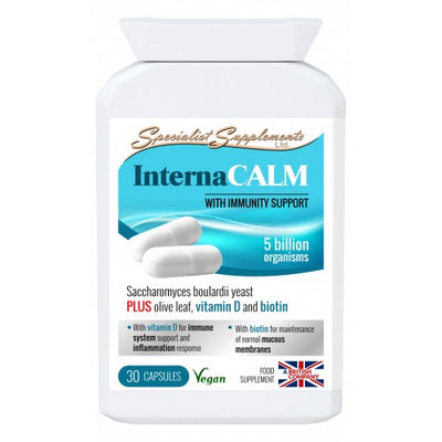 A high-strength Saccharomyces boulardii yeast formula (5 billion organisms per capsule), with added olive leaf extract, vitamin D3 and biotin.
